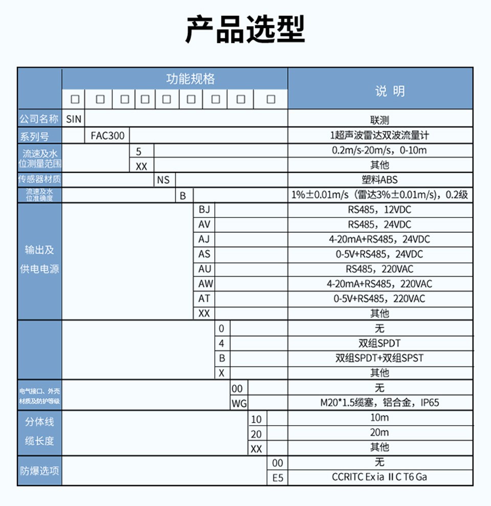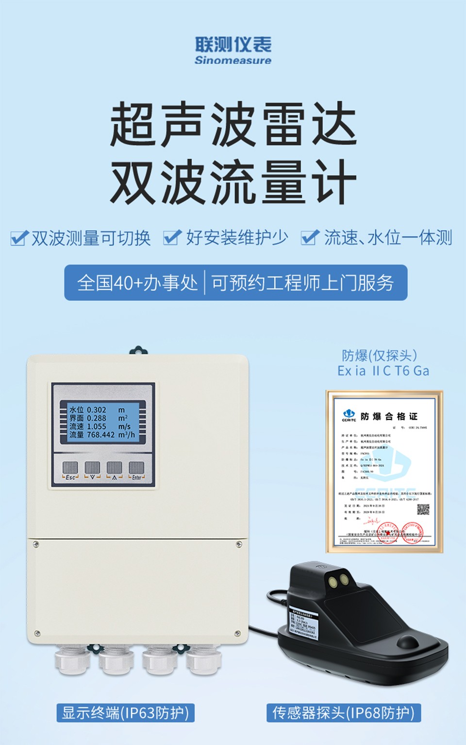 產(chǎn)品描述:聯(lián)測(cè)FAC300超聲波雷達(dá)雙波流量計(jì),一款應(yīng)用在自然水域、渠道或管道中測(cè)量水的流速、水位的產(chǎn)品。產(chǎn)品高度集成了雷達(dá)測(cè)流和超聲波測(cè)流優(yōu)勢(shì),實(shí)現(xiàn)滿管非滿管全場(chǎng)景測(cè)流,同時(shí)兼具雷達(dá)產(chǎn)品頂部安裝運(yùn)維量極低的特點(diǎn),也因此得以輕松應(yīng)對(duì)復(fù)雜惡劣的管網(wǎng)工況。超聲波雷達(dá)雙波流量計(jì)利用雷達(dá)多普勒和超聲波多普勒復(fù)合雙模傳感器來(lái)感知水體流速,同時(shí)通過(guò)靜壓式和電導(dǎo)率傳感器復(fù)合傳感器感知水位變化,從而計(jì)算出實(shí)時(shí)流量。