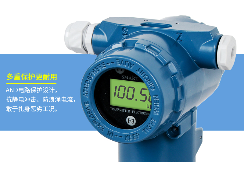 產(chǎn)品描述:SIN-3051系列壓力變送器利用差動(dòng)電容檢測(cè)的原理,當(dāng)膜片兩側(cè)壓力不一致時(shí),使容室中測(cè)量膜片產(chǎn)生位移,其位移量與壓力差成正比,通過(guò)電路處理將電容變化量轉(zhuǎn)換成4~20mA的二線制電流或電壓信號(hào),可帶上458協(xié)議或者HART通訊協(xié)議功能。該變送器具有堅(jiān)固抗振,量程,零點(diǎn)和阻尼現(xiàn)場(chǎng)連續(xù)可調(diào)。
