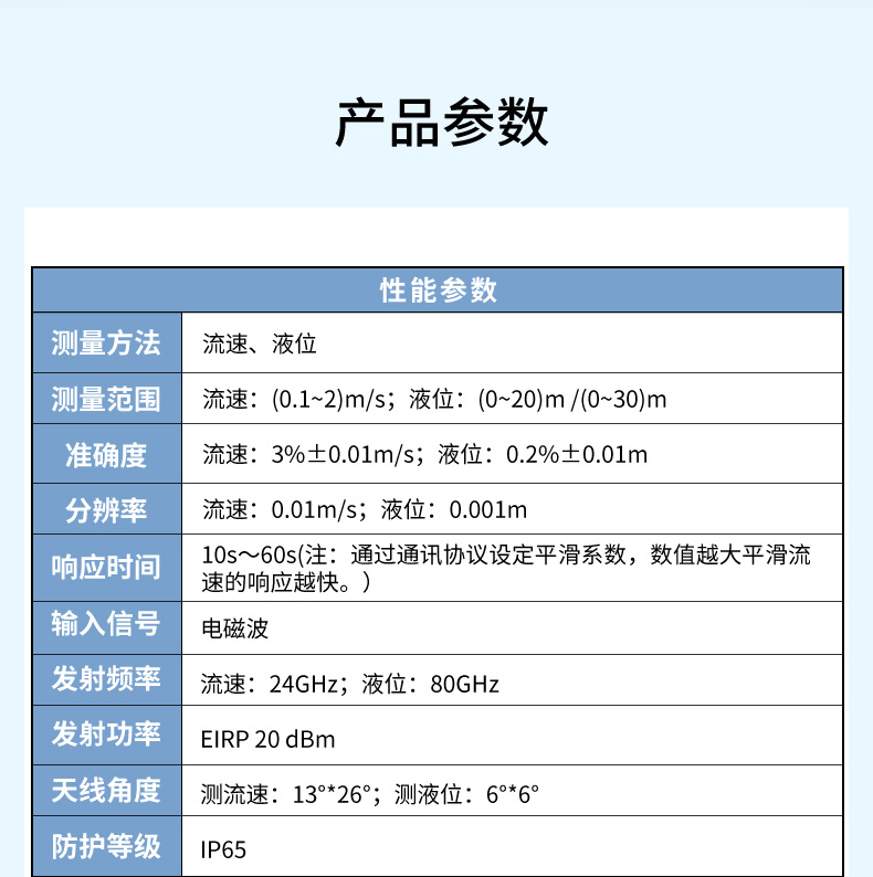 產(chǎn)品描述:本款雷達(dá)多普勒流量計(jì)是在自然水域中測(cè)量水的流速、水位的儀表。測(cè)距雷達(dá)單元工作頻率為 80GHz,測(cè)速雷達(dá)單元工作頻率為 24GHz。測(cè)量點(diǎn)在機(jī)體前方,不破壞流場(chǎng),適用于泥沙懸浮物含量高、水草等漂浮物多和極其嚴(yán)苛的冰期場(chǎng)合的河流中測(cè)量。可廣泛適用于水位測(cè)站灌溉支渠、污雨水管網(wǎng)等流量監(jiān)測(cè)。-CN1