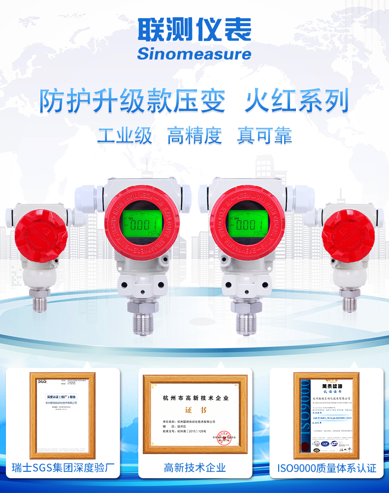 產品描述:壓力變送器壓力敏感核心采用了高性能的硅壓阻式壓力 充油芯體,內部的專用集成電路將傳感器毫伏信號轉換成標 準遠距離傳輸的電流信號,可以直接與計算機接口卡、控制 儀表、智能儀表或 PLC 等方便相連。該系列產品廣泛應用于 工業過程控制、石油、化工、冶金等行業。