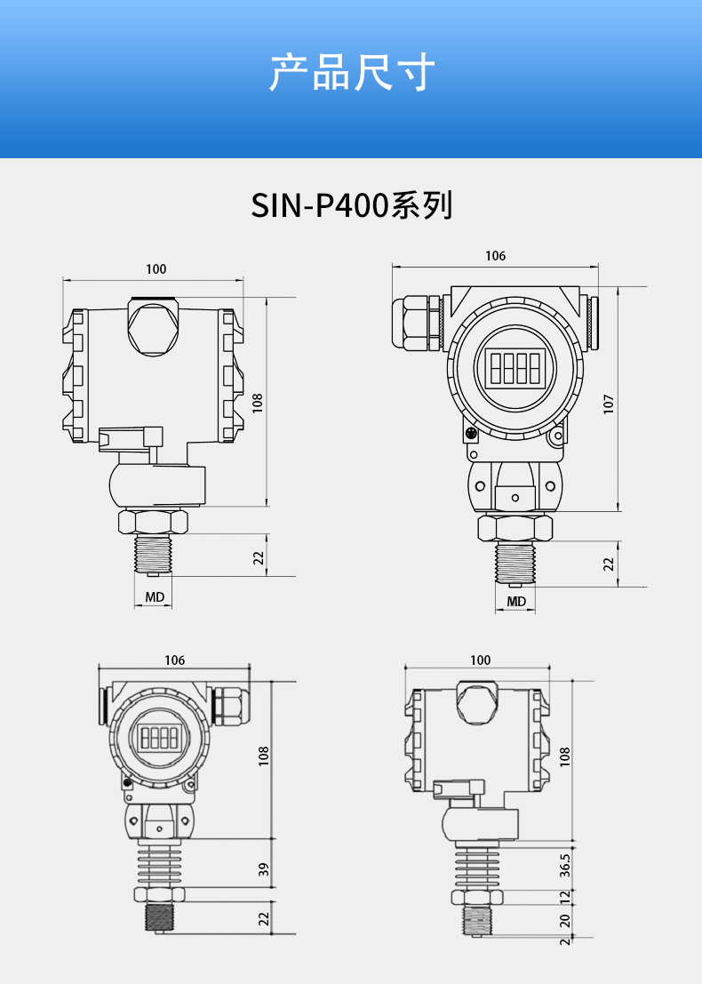 產品名稱:聯測_SIN-P400_2088型壓力變送器_榔頭型_可帶顯示_