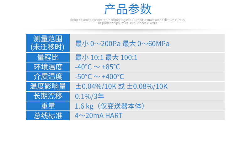 產品描述:智能差壓變送器是用世界先進的單晶硅壓力傳感器技術與專利封裝工藝,精心研制出的一款國際領先技術的高性能壓力變送器。