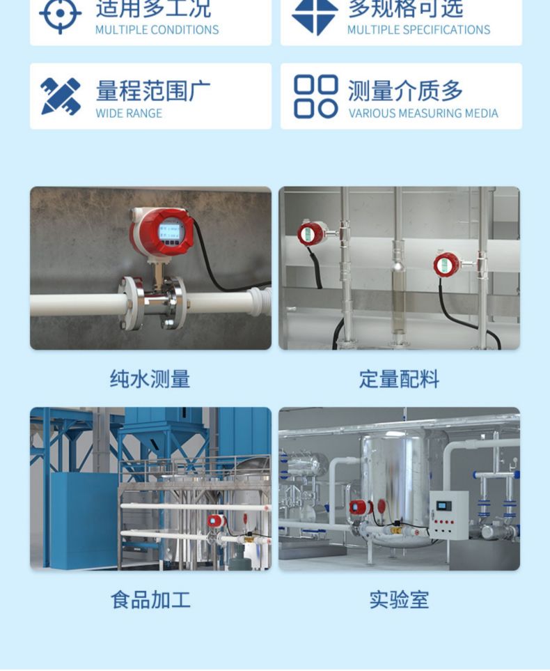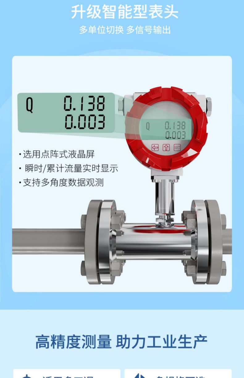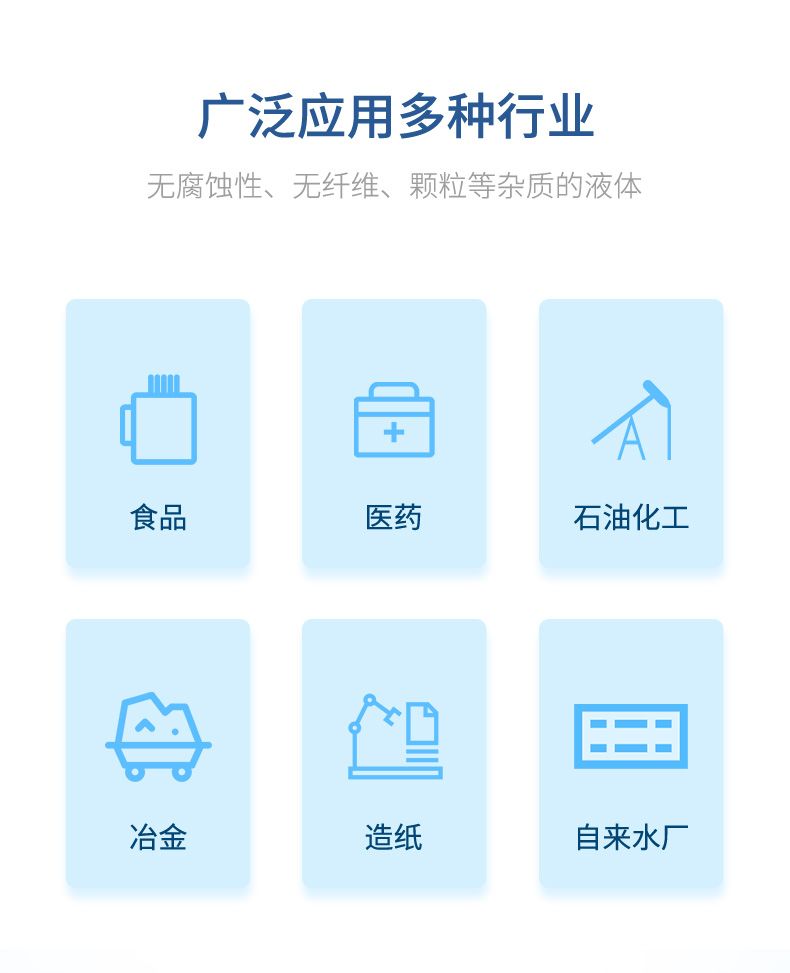 產(chǎn)品描述:液體渦輪流量計(jì)基于力矩平衡原理,屬于速度式流量儀表。它具有準(zhǔn)確度高、重復(fù)性好、結(jié)構(gòu)簡單、壓力損失小、維修方便等優(yōu)點(diǎn),于測量封閉管道中低粘度液體的體積流量。在石油、化工、冶金、供水、造紙等行業(yè)中具有廣泛的應(yīng)用。