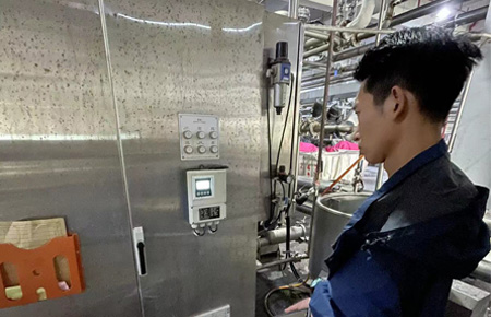 我司這次的渦輪流量計主要應用于印染機上面的加水管道,主要配合PLC做染色機定量加水控制,得益于渦輪流量計的高響應速度與較高的精度,保證了染色程度的精準控制。