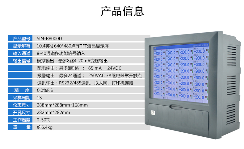 產(chǎn)品名稱:聯(lián)測(cè)_SIN-R8000D_1-40路可選_10.4英寸彩屏_記錄溫度/壓力/頻率/開(kāi)關(guān)量等多種參數(shù)