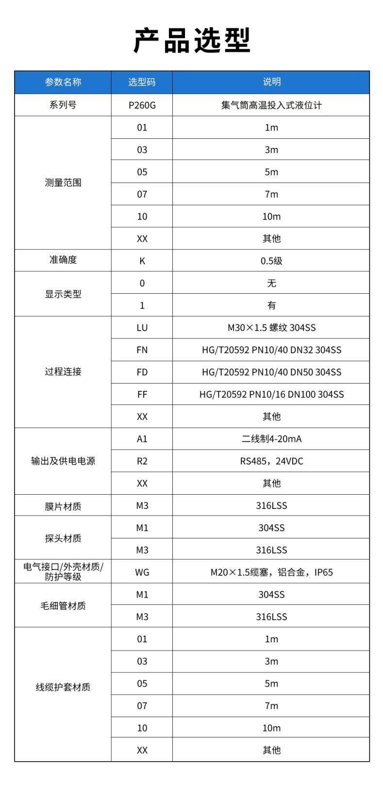 產品名稱:SIN-P260G殼體投入式液位計/水位計 高溫型 集氣筒式_