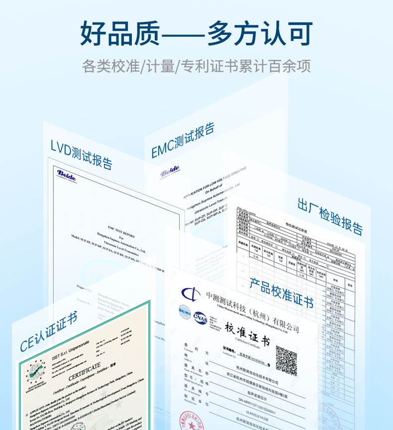 產(chǎn)品描述:超聲波液位計(jì)(測(cè)量液位/物位),是一種非接觸式、高可靠性、高 性價(jià)比、易安裝維護(hù)的液位/物位測(cè)量?jī)x器。它不需接觸被測(cè)量介質(zhì)就能 滿足大部分液位/物位測(cè)量要求,是本公司具有完全自主產(chǎn)權(quán)的新一代超聲波液位計(jì)。