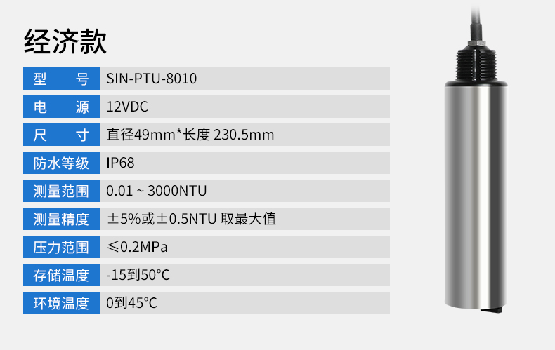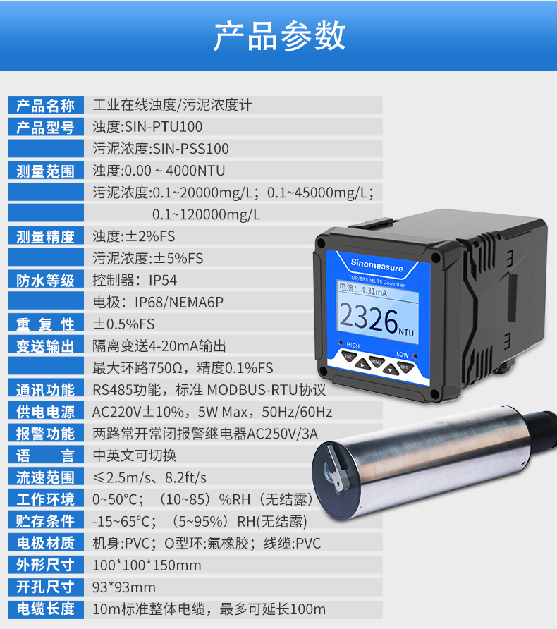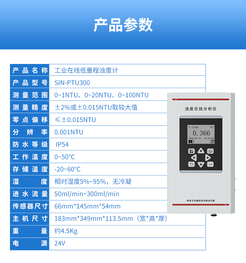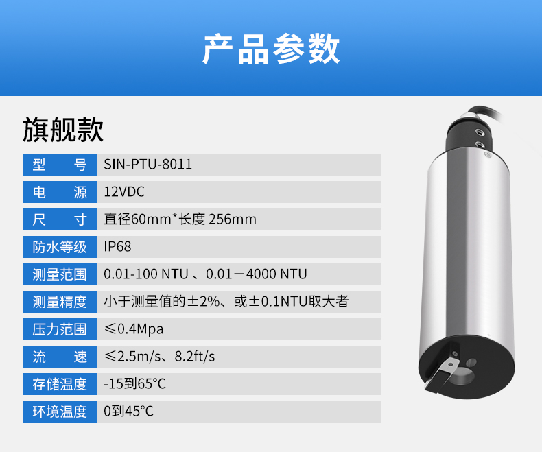 產品名稱:聯測_SIN-PTU110/100在線濁度儀_水處理_污水/廢水等介質_